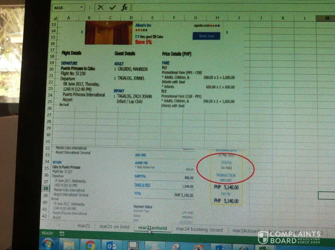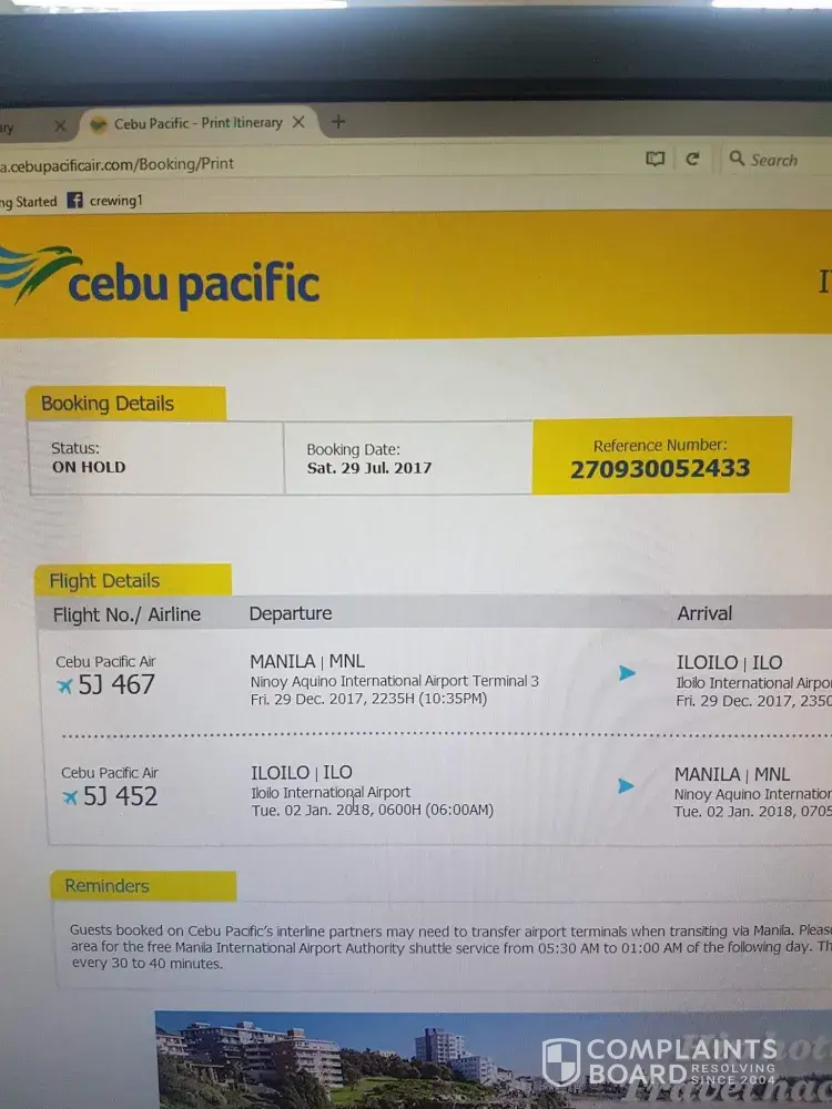 I book online last march 21 & 24, 2017 bound palawan~cebu and vice versa, unfortunately after posting payment a website prompt that booking was closed & put on hold. Thus, no itinerary being generated.