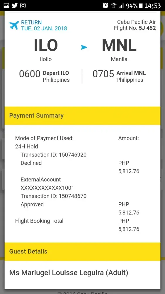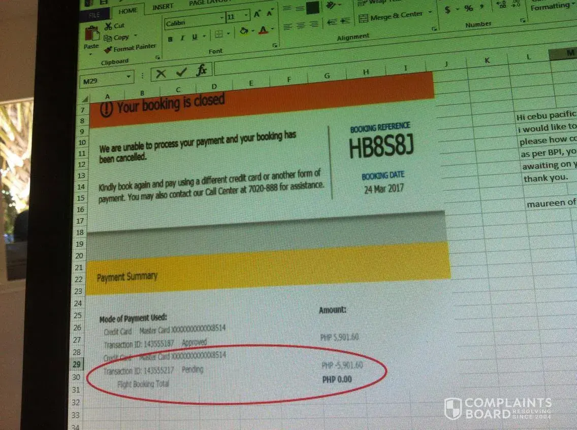 Cebu Pacific Air online booking/debit card charge but no itinerary/declined upon payment