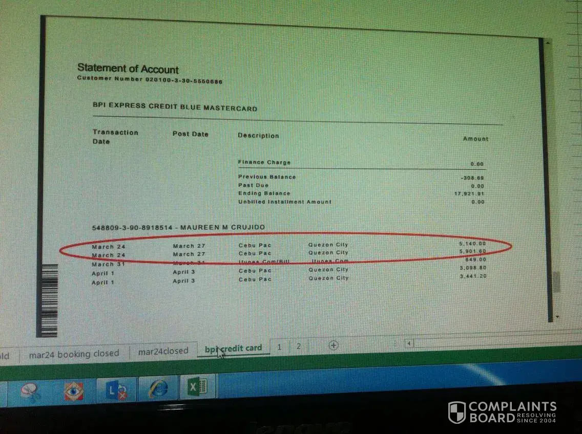 Cebu Pacific Air complaining about the charging of my bdo credit card when my friend booked online