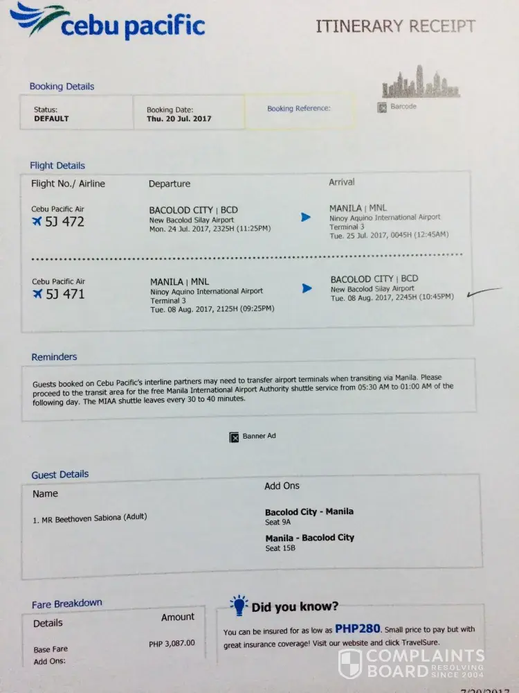 I will make sure that this complaint reaches the right regulatory agencies, if we will not receive the right answers from cebu pacific. Specifically: