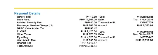 We have booked our flights on November for 3 tickets from Cebu to Puerto Princessa for an amount of 8333, 64 PHP.