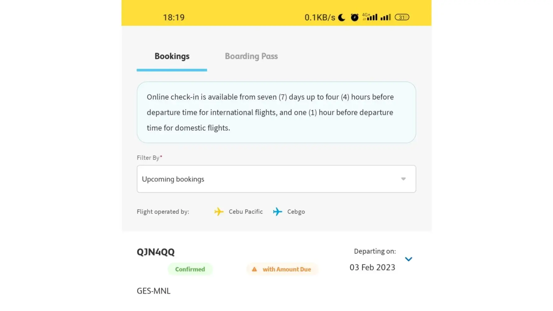 Hi I do anyone have similar experience with this? I want to rebook my flight, by doing so want to check how much rebooking would cost but it turned out that it is higher compared to the present ticker I have. I accidentally clicked a button. And now i have a pending payment for rebooking. I can no longer access my boarding pass. That does this issue cancels after 24hrs after not being paid? I tried asking the customer service of Cebu Pacific, but since its only a bot they can't even answer my question.