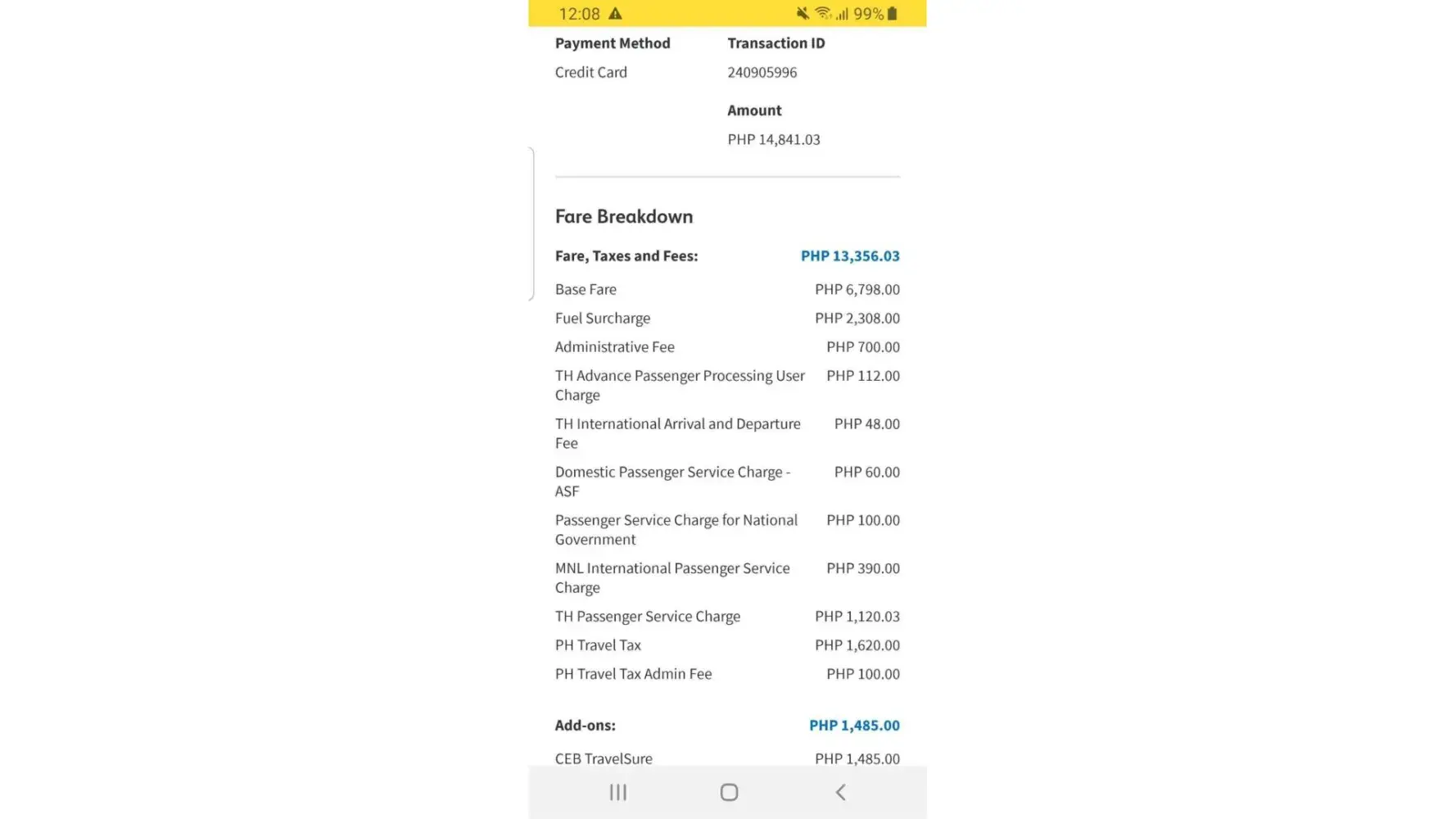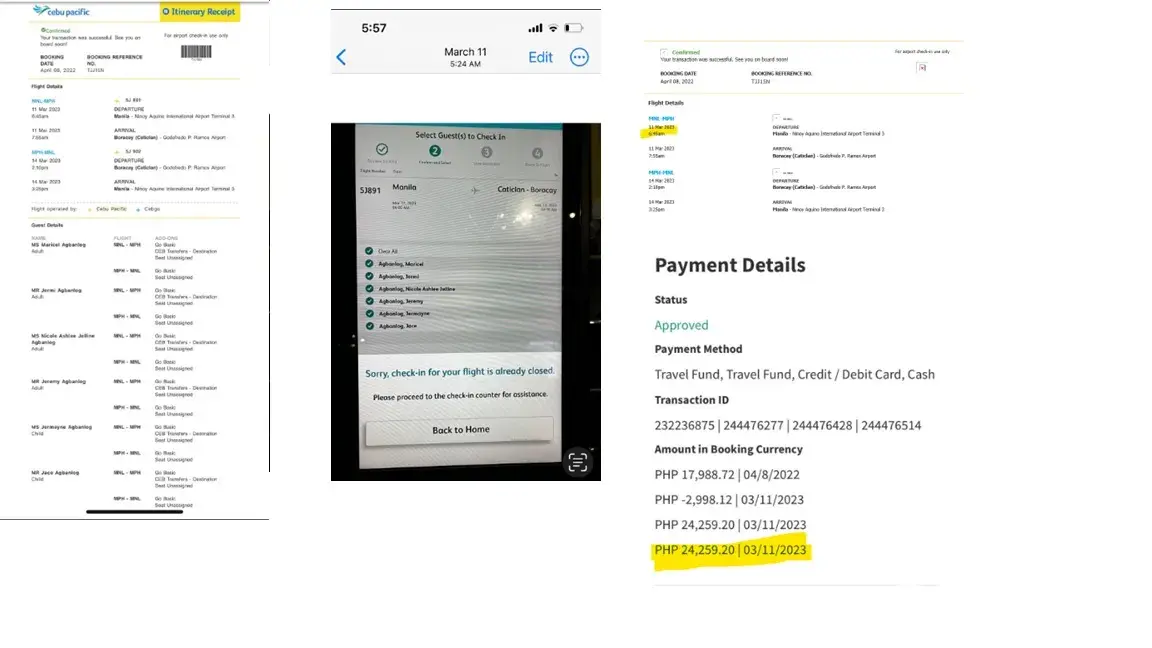 Paid for Rebooking PHP 24,259 for flight 5J911.