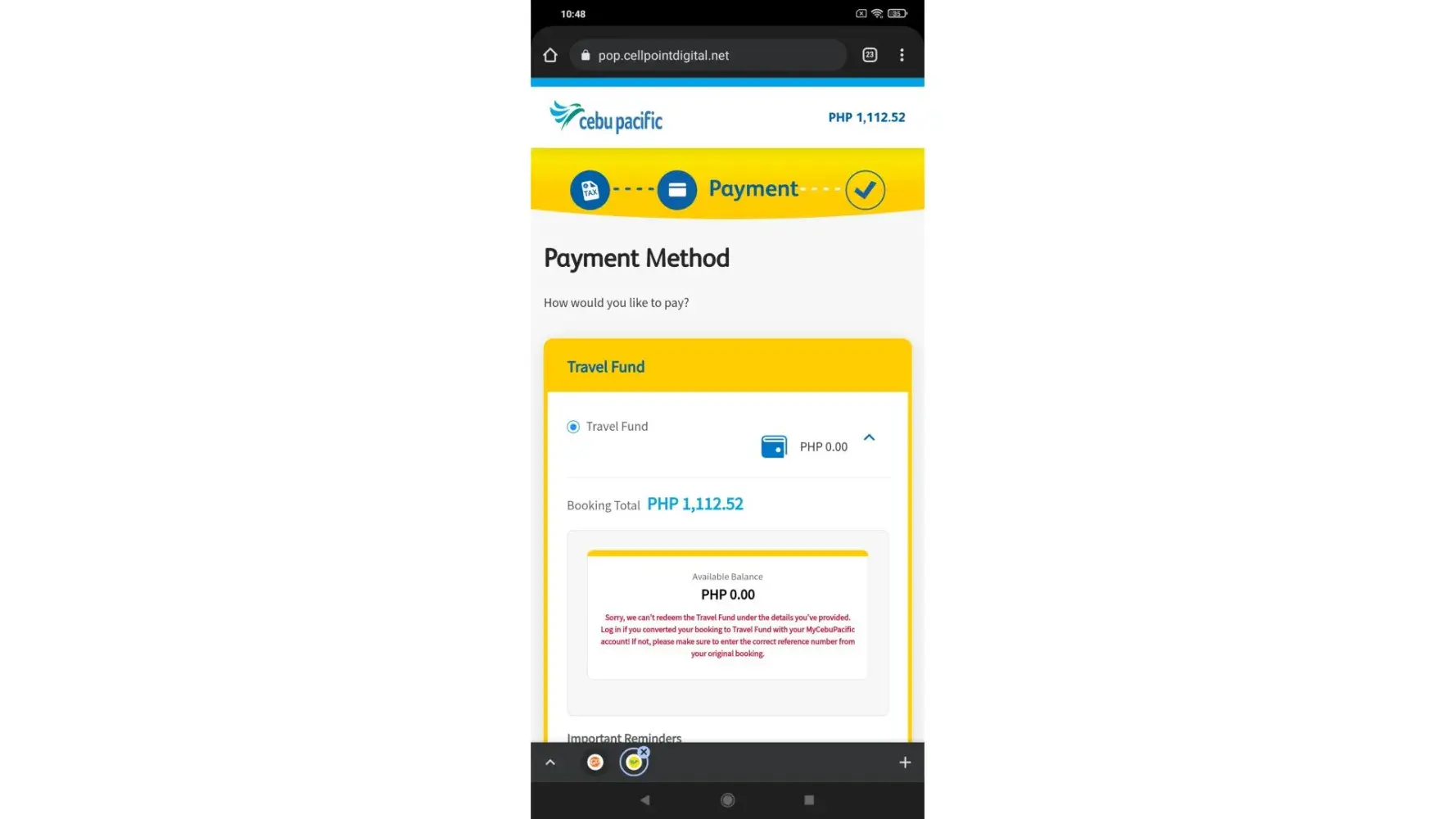 I logged in my CebuPacific account and want to book a flight. As i was already chosen my desired destination and ready to pay the amount. A notice popped-up and says that i will be redirected to their partners Payment Page. In their partners payment page i wanted to choose Travel Fund as the mode of Payment but it says in there Partners page that it was not logged in and my Travel Fund is 0. I still have over 1,000 inside my Travel Fund