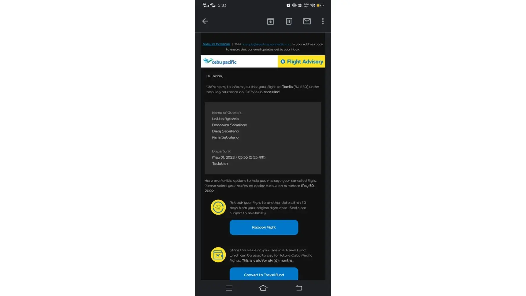 We want for a refund anymore kasi alam namin matatagalan naman yung refund base on our experience in our previous flight we had with you.