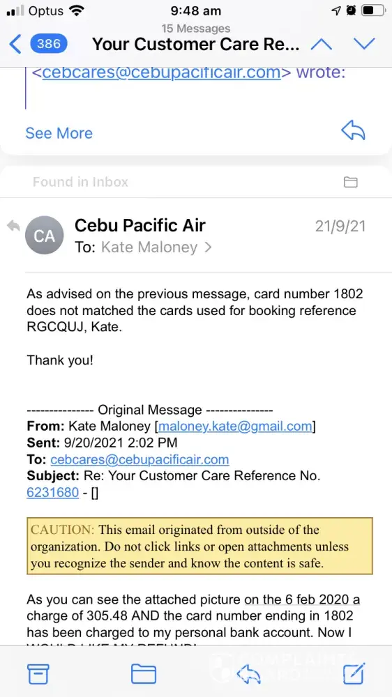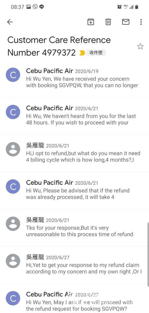 Cebu Pacific customer service is no longer responding to my refund request for booking FEECMZ. I first submitted an application for refund last year (July 2020). I've been very patient whenever they tell me the process has not yet been completed. Around October 2021 I asked for another follow-up & they asked for one of the passenger's birth certificate. I have them a heads up that it might take me a few days to submit a copy of the birth certificate since I have lost it. They were very gracious about it. But once I did submit a copy, they no longer respond to my many emails. My Customer Care Reference Number is 4901106.