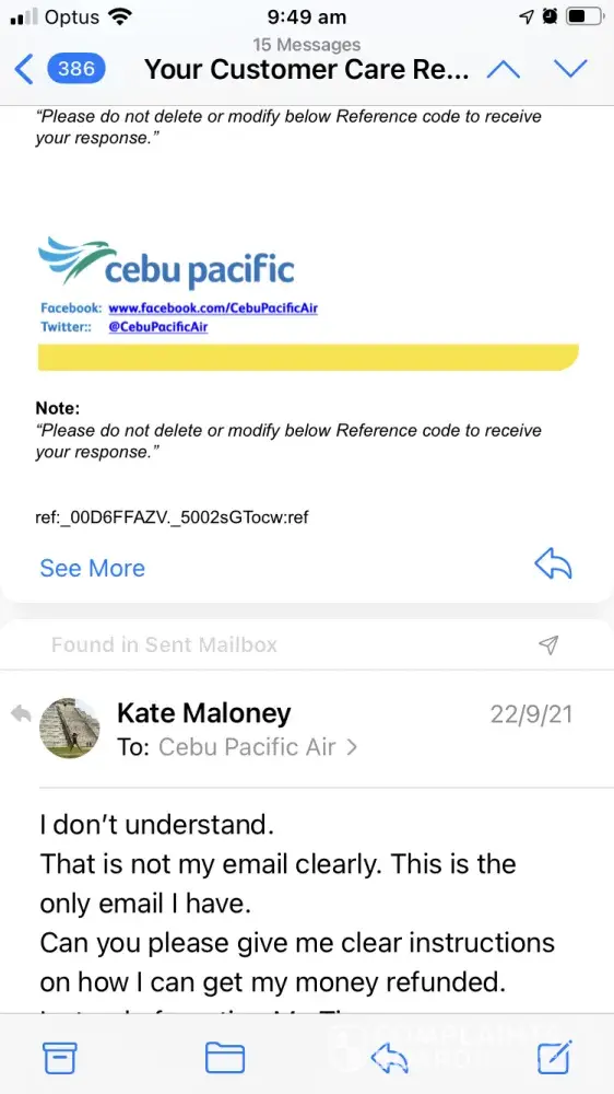 Desired outcome: Cebu Pacific, either refund my money or send me my booking confirmation and itinerary receipt