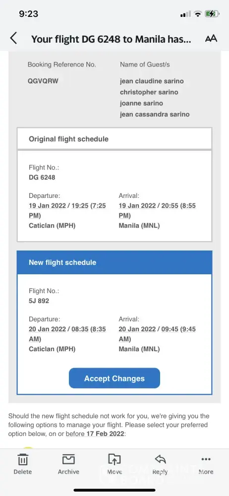 Desired outcome: Rebooked to Original Departure from Caticlan Date but earlier timr