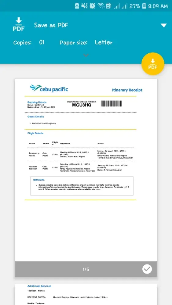 Flight dates: March 4, 2019 6:15AM Tacloban to MNL. 5J 652