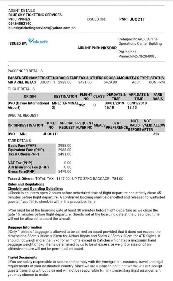 I would like to request for an electronic copy of my ticket and boarding pass which I lost last October 27, 2018 after my arrival at Butuan City airport. I badly needed the electronic copy for my liquidation in Provincial Veterinarian's Office, Agusan del Norte.