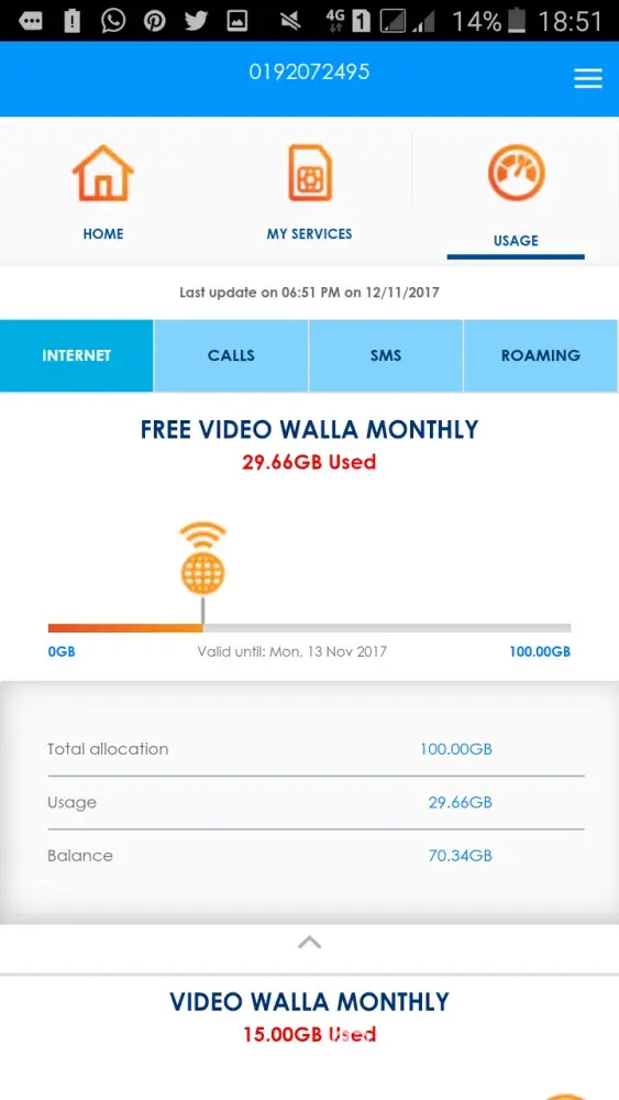 hi. i am currently on the first gold plus postpaid plan (40gb) and i have redeemed my free 100gb video walla on the 27th of october 2017. when i checked the expiry date on celcom postpaid app, it stated that the offer will be renewed on the 27th of november 2017 so its a complete 1 month cycle. but when the last tine i check which was two days ago (10.11.17) the expiry date has been brought earlier to 13.11.17 which is the date my monthly bill cycle will be renewed. i have only used the free 100gb video walla for two weeks. can you please set the cycle to the 27th of each month buy today (12.11.17) before 10pm please.