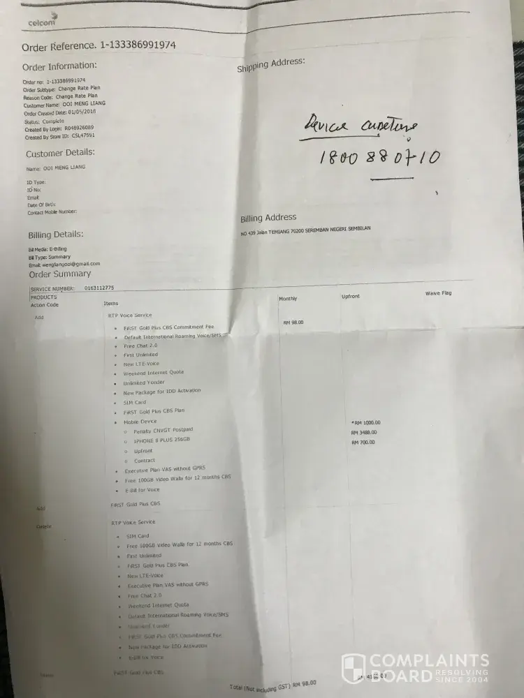 1. i have signed an iPhone 8 plus 256GB plan with celcom of First Gold Plus of RM98/month together with the upfront payment of RM700.