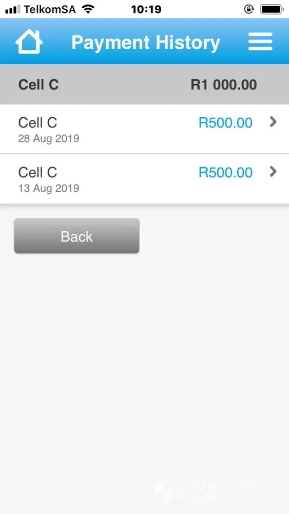 See attached screenshots - this complaint was sent using alwayson - which I now pay for over and above my cell c data.
