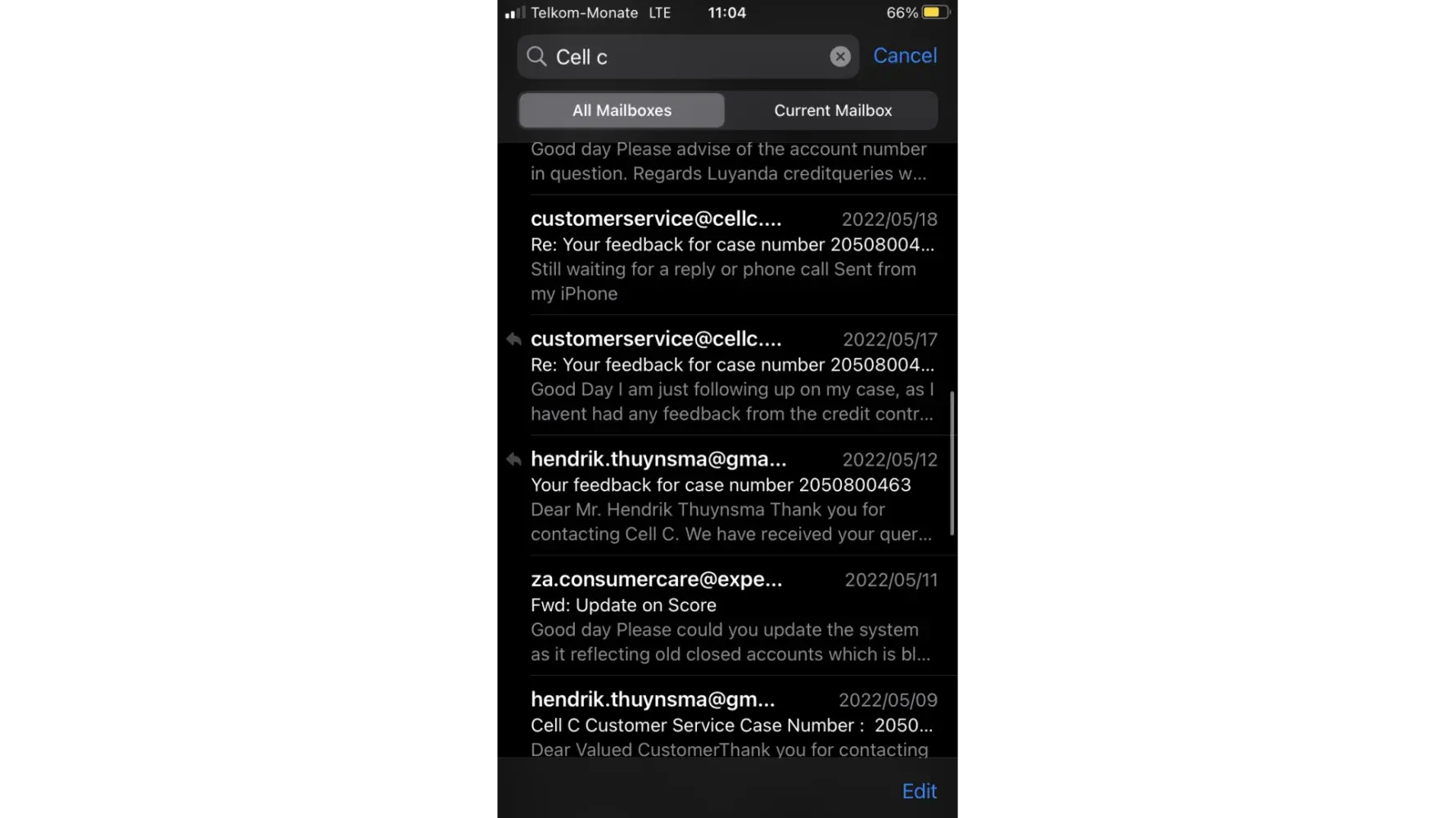 I have emailed '[protected]@cellc.co.za'; '[protected]@cellc.co.za'; '[protected]@cellc.co.za'; '[protected]@cellc.co.za' and still no reply from any of the abovementioned emails on the website.