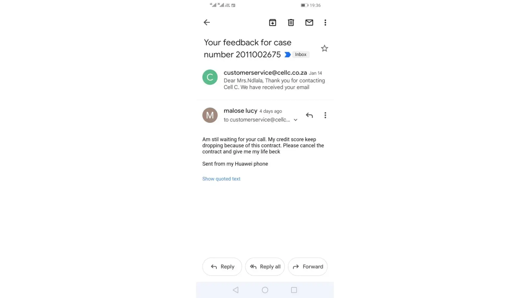 So on my way home I called customer service again and told the lady what happened. She said I have to go to the Cell C store and they need to refund me. So I told her I just came from there and Sihle and Vivian told me it is my problem.