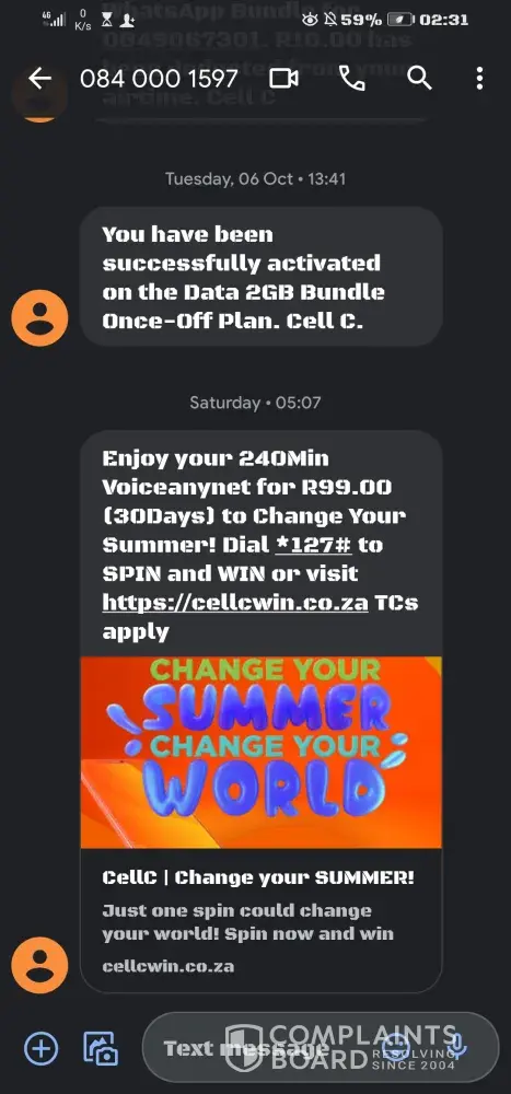 On 2 October 2020 I upgraded after seeing a Friday special. I phoned the upgrade department on the Friday and told the lady that I want to upgrade to the A31 as indicated in the Friday special. For R299 there is more data available than on the usual upgrade for the A31. We concluded the upgrade and on 5 October 2020 I received my phone. That evening I received and sms stating that the upgrade is appreciated and the package is 1G. I immediately e-mailed Cell C on 5 October at 19:36 indicating that the package is not correct. I said in the mail that I am disputing this package and would like to listen to the recording. I received only on 9 October 2020 a response with a Ref nr [protected] saying that I will be contacted within 2 days. Needless to say I did not receive a response. I again mailed on the 12th of October asking what is the situation. On this e-mail I did not even get a response as on the previous mail. I have phone no call logs for 1 October to 20 October, but I phone Cell C 084145 on several occasions asking for feedback. I also requested the recording so that I can take further steps. My calls that I can pick up on my cell is on the following dates: 21 Oct, 24 Oct, 26 Oct, 28 Oct, 3 Nov, 10 Nov, 19 Nov and 23 Nov. Every time the case is escalated and I am assured that someone will be phoning me back the same day. I only received a call once from a lady who accrued me that she will sort out this query. She indicated that it was on the Friday and she do not even have to listen to the recording. She will rectify the contract. She gave me 5g data. Why would you do that if Cell C is not at fault? Rectifying my contract package was never done. I am still in the same boat and 2 months has almost lapsed. I received SMS's on the following dates: 30 Oct - telling me that I renewed my contract to 1gb, 30 Oct - giving me a case nr [protected] and saying upgrade re-processed on the CCD: Deal that was offered by the consultant when upgrading line, 3 Nov - case nr [protected], 19 Nov - Ref nr [protected], 20 Nov - case nr [protected] receive feedback (but no feedback in the sms), 20 Nov - case nr [protected], 23 Nov - ref nr [protected].