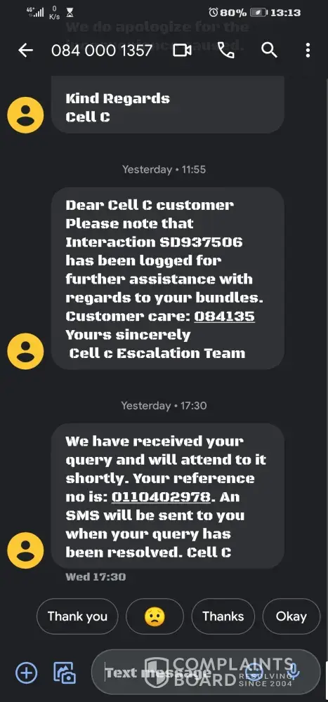 I'm here to plead with you to assist me with my case that they give me my letter so I can clear my name because I'm no longer owing them any cent. Everywhere I go to make a credit they take me back to cell c so they are the ones who handed me over but they still denied to assist me.