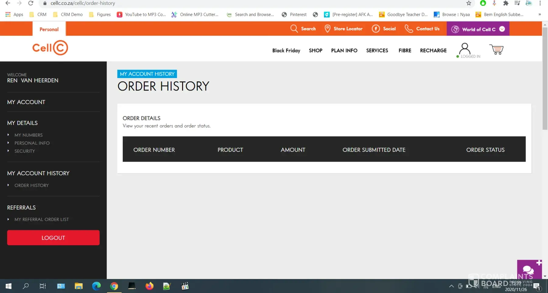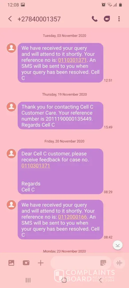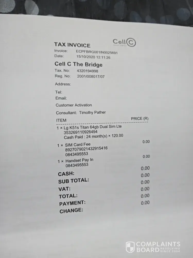 This happened on the 28/10/2020, I went and registered the claim at cell c fourways mall branch on the 29/10/2020.