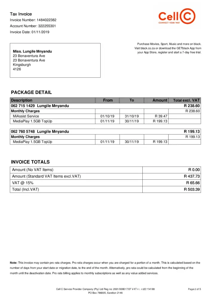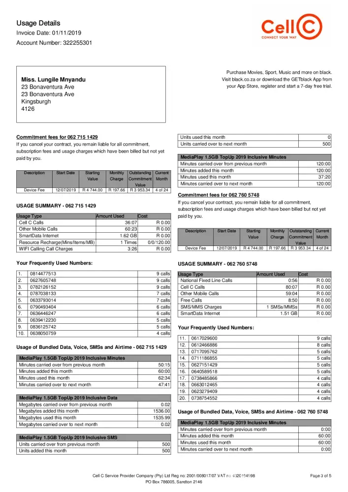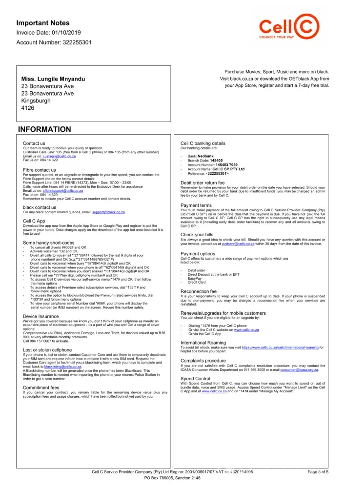 In July 2019 I took out a contract with Cell C at the Galleria Branch, with the two agreement numbers : [protected] & [protected].