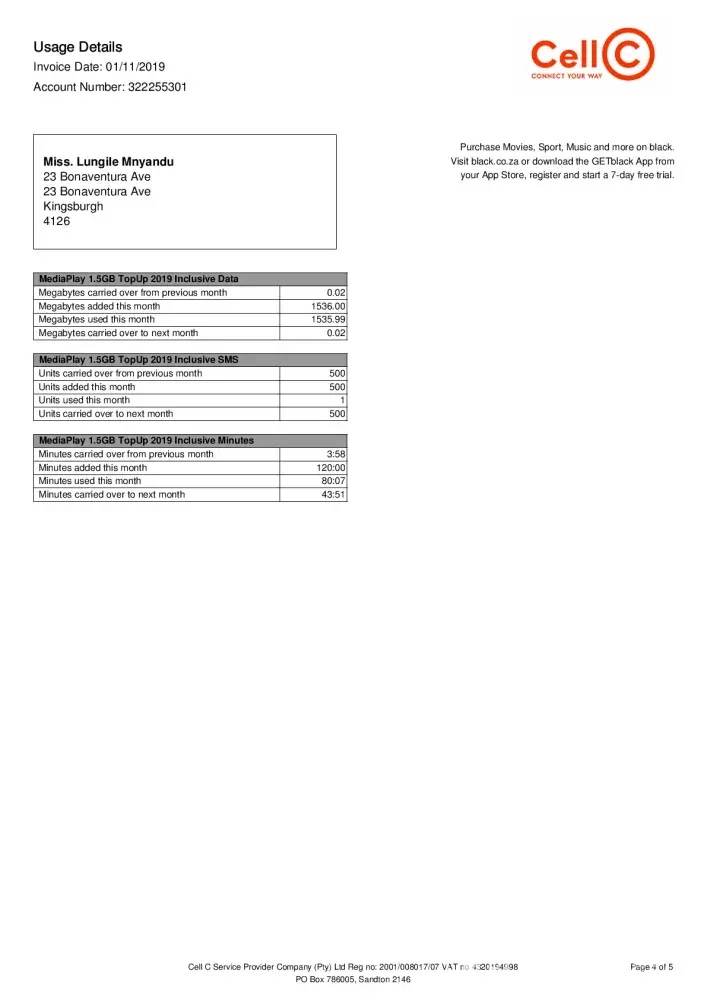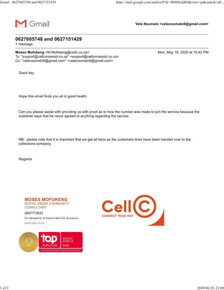 He was then left with one option of contacting Cell C's customer care centre and report that the services which were activated on one of the numbers.