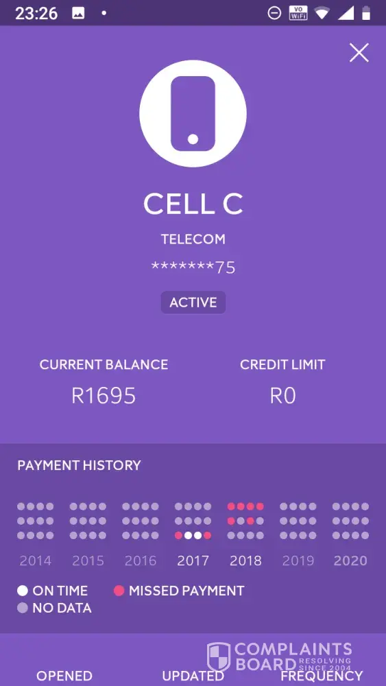 Good day my name is zainodien Damon I'd number [protected] I've opened cell phone contract with cell c August 2017 paid my account every month for 6 months then my account went into arrears in 2018 but then by 30th October 2019 I settled my account in full and closed it and was told by one of cell c agents that my information will be sent to the ITC and my profile will be updated which never happend I've checked my credit report recently and cell account is stil active and reflecting badly on my credit report please help me as I've been struggling with this issue for all over m almost a full year please advice and revert back to me thank you please check attachments for documents related to this issue.
