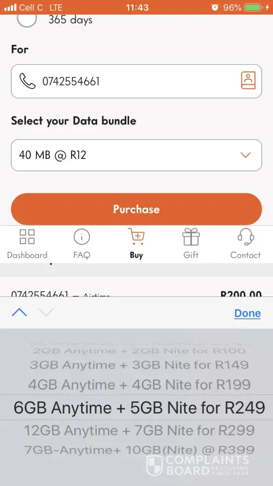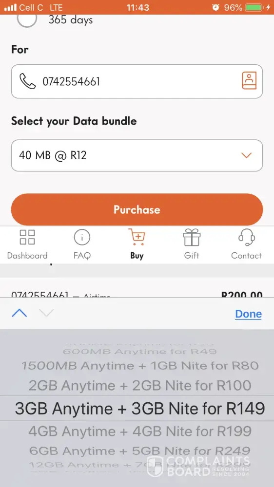 I explained the situation to them and they said I must sort it out with the Cell C.