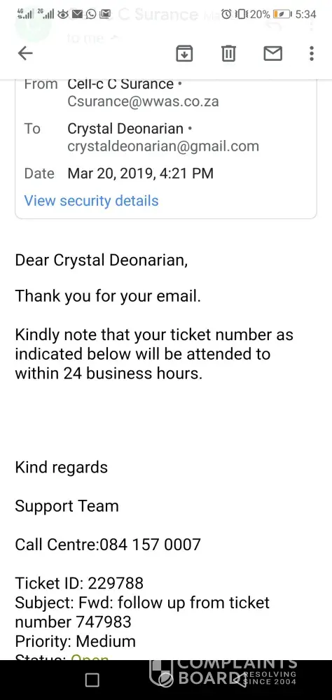 On the 16/03/2019 I took my phone to cell c store for repairs. I filled in the claims form and it was submitted. I called the call centre 2 days later to follow up and they tell me that they have not received any documents. So I resend all documents. When I follow up again, the agent by the name of Quiniso Nkabinde says she's waiting for proof of number exchange. I go to the branch again to get this and send back but you guys say you still awaiting for number exchange document. Another agent calls the branch and still cannot get the document. I've called you several times and visited the branch 4 times already and still my phone hasn't even been processed for claims. I am 8 months pregnant and you guys are making me run up and down! I am so pissed of with your service!The branch blames the call centre. The call centre blames the branch. What the hell is going on with cell c? Nobody wants to take accountability. Nobody wants to assist me! Very nicely I was sold a phone with insurance. Very nicely my debit orders were collected but when I have a serious problem here nobody can help? First and last contract with this [censored]ty company! I have 3 other contracts with Telkom since 2015 and not once did I have this problem with them. It's no wonder why your company is under so much debt! All your customers are leaving without paying their contracts in full due to pathetic service. Rather you shut this place down!