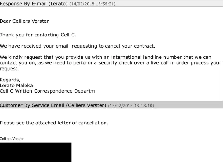 I have a full PDF transcript of all conversations from February with CellC as well as a full PDF transcript of my conversation with the social media consultant.