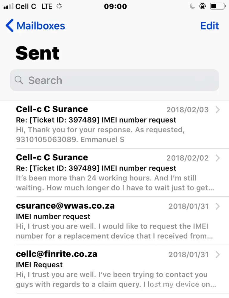 Remember that email I sent on the 29th of Jan to get my IMEI number?... Well guess what, C-Surance finally responded on the 3rd of March 2018. 30 days outside of the window claim period.