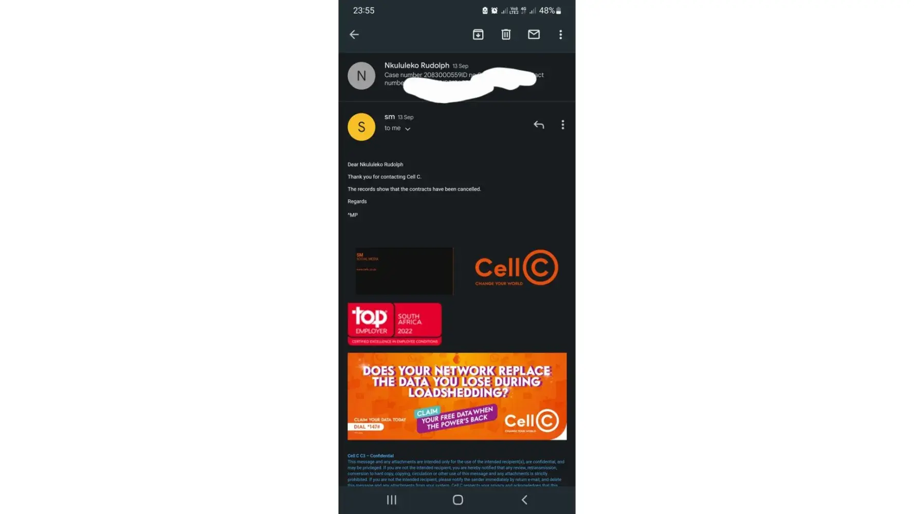 Please send a brief description of your query and the reference numbers to sm@cellc.co.za . Please also include the number in question and contact number.