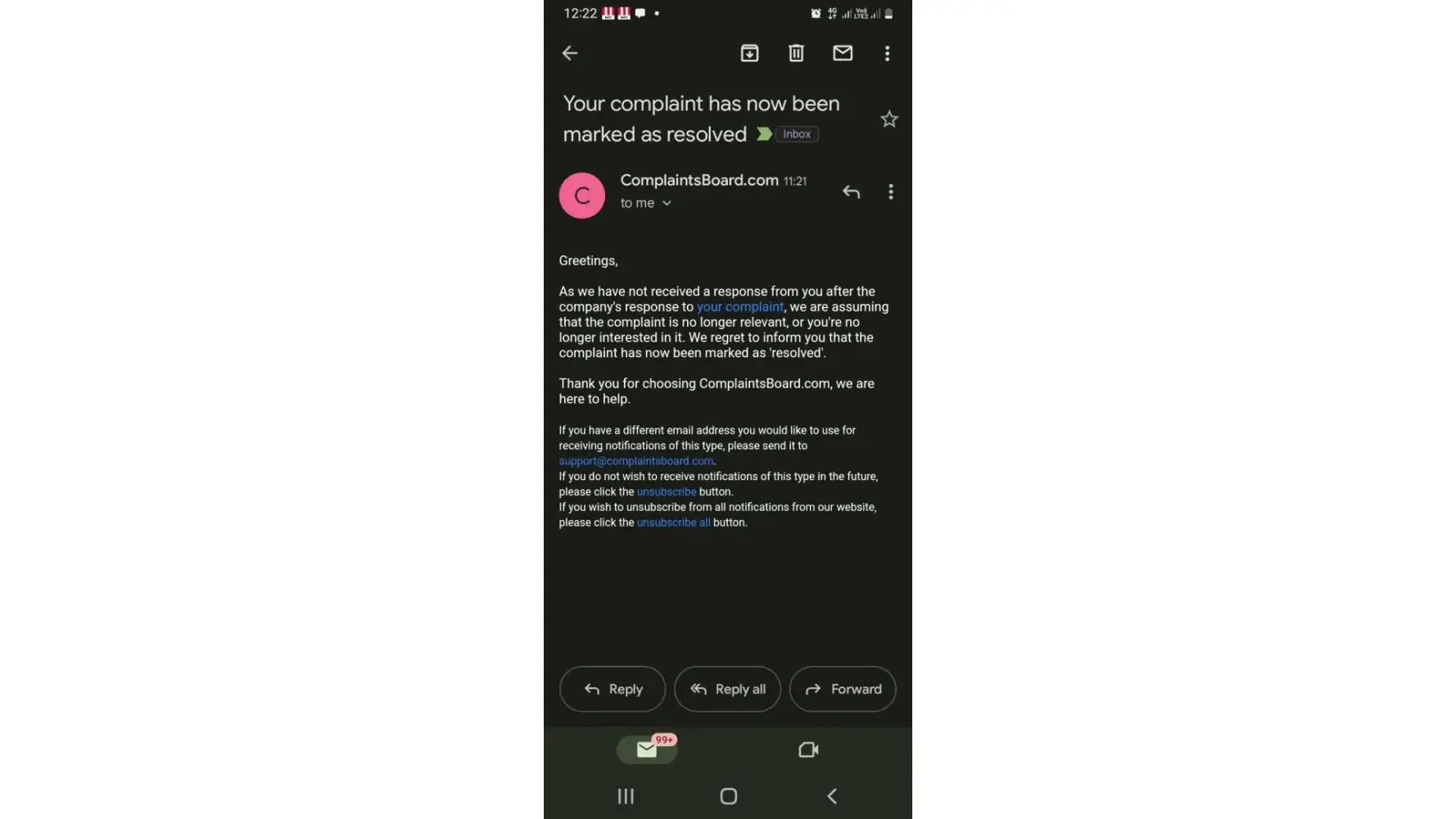 The complaint has been investigated and resolved to the customer’s satisfaction.