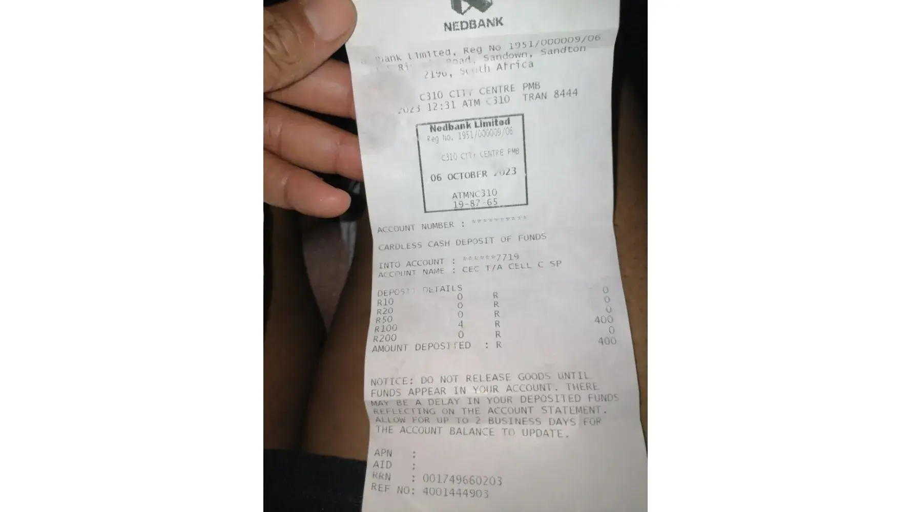 I made a payment,but it was not received I made it at Nedbank on the 6 of October