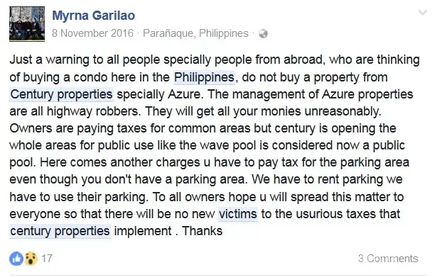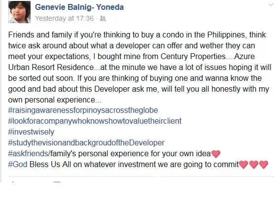 Please let your friends/relatives know about century properties being one of the worst developers in the philippines.