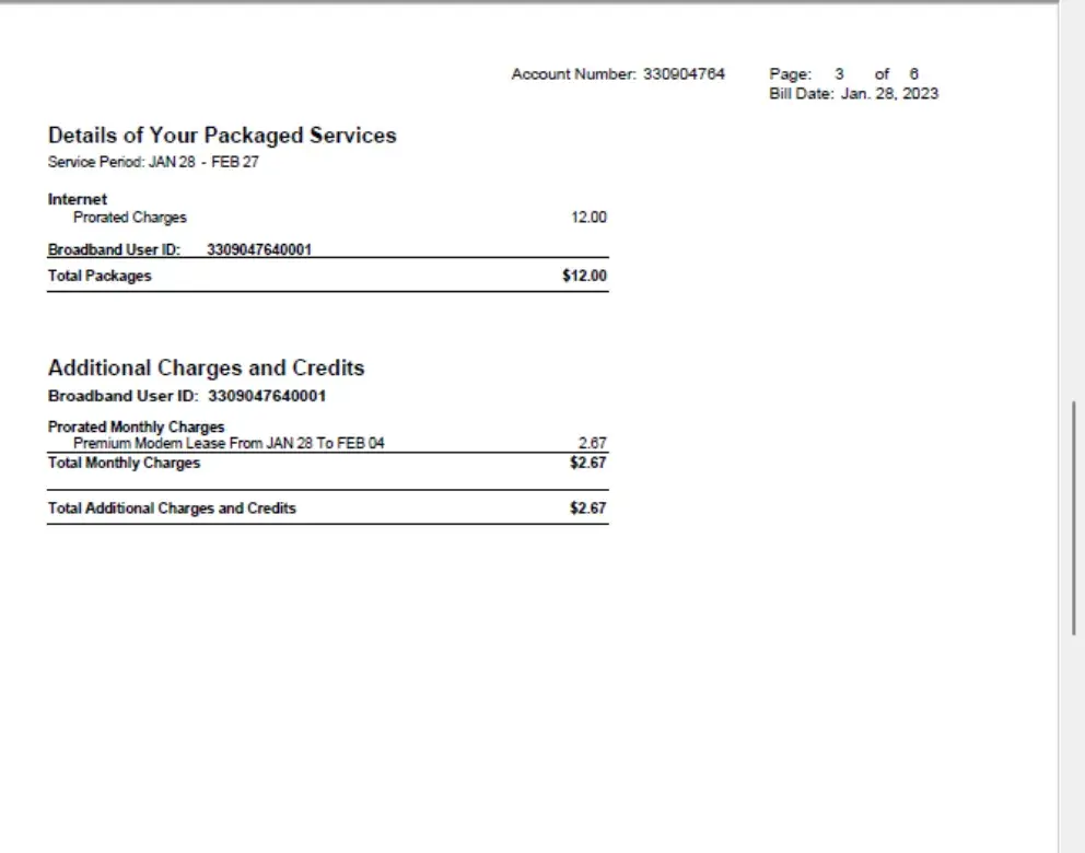 I canceled my service on or about Jan 12, 2023. Previous bills were online statements and were paid with auto pay. My only service was internet and the bills were consistent, so I never reviewed my online bills. After canceling, I received a bill for Jan 28 - Feb 04 for $14.78, this period is after I canceled my service. I received a paper bill for this $14.78 and noticed that I was being charged for modem lease. I have not leased a CenturyLink modem since late 2018. I have supplied CenturyLink with a copy of the modem that I purchased from Amazon and a photo of the modem.