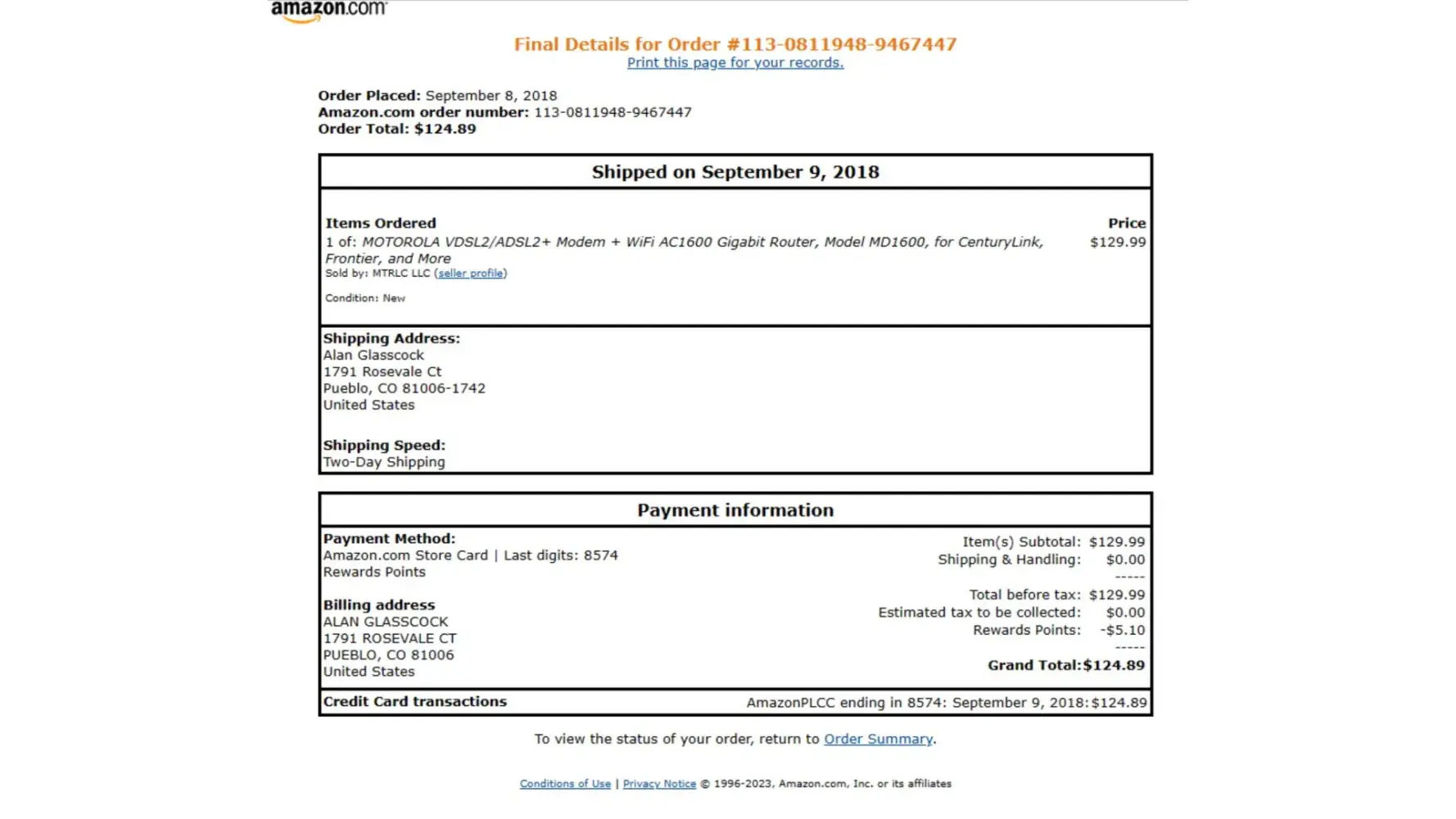 CenturyLink claims that they never received a returned modem that I had leased prior to Oct 2018. Due to their billing inaccuracies, I have great doubts that record of the returned modem is reliable. I did not have a leased modem and the only proof of this is the purchase of the modem that I have used for the past 4 - 5 years.