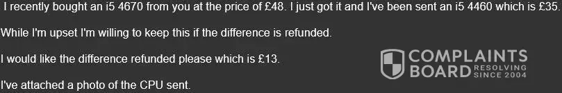 They sent an i5 4460 which isn't what I ordered and had specs/features that I couldn't use fully. This CPU also cost only £35 not £48.
