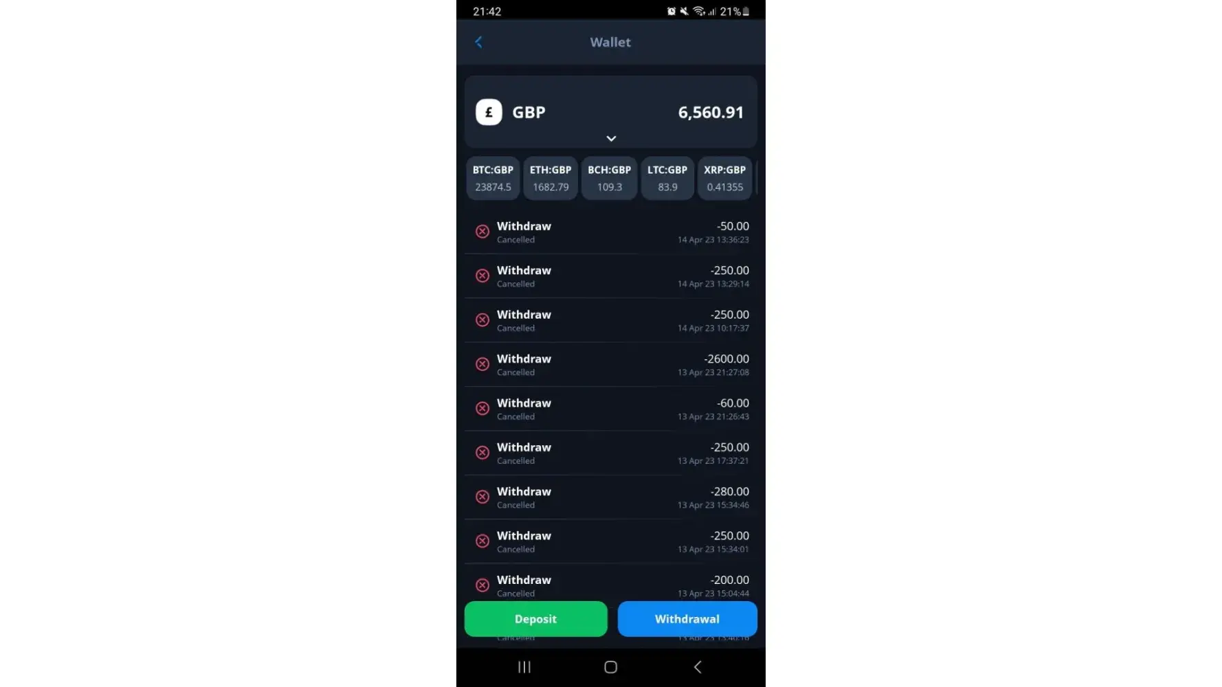 I deposited funds into cex, after the deposit confirmation, I tried to withdraw but couldn't and was told my transactions have been suspended due to kyc, was asked to send screenshots and documents, I did so but has never been assisted. That's was beginning of March, around the 6th of March, it is over a month now since I submitted my documents. I tried to raise complaints, and recently support have decided not to respond to my queries. When I withdrew the money from the trading platform it was because I needed the funds urgently, I had to terminate my contract before time, but is now paining me because if the funds were still where I was withdrawing from, it could be more Dan 10 000 usd now instead it is losing value in cex, I deposited 303 now is 256.