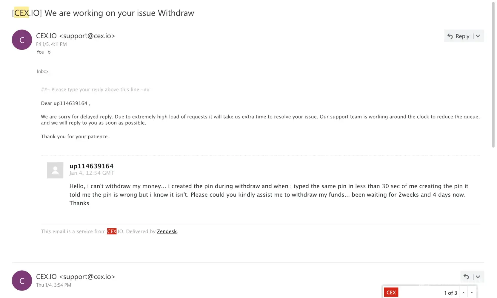 12 day passed, still CEX.io unable to send money. Here is last letter of CEX.io