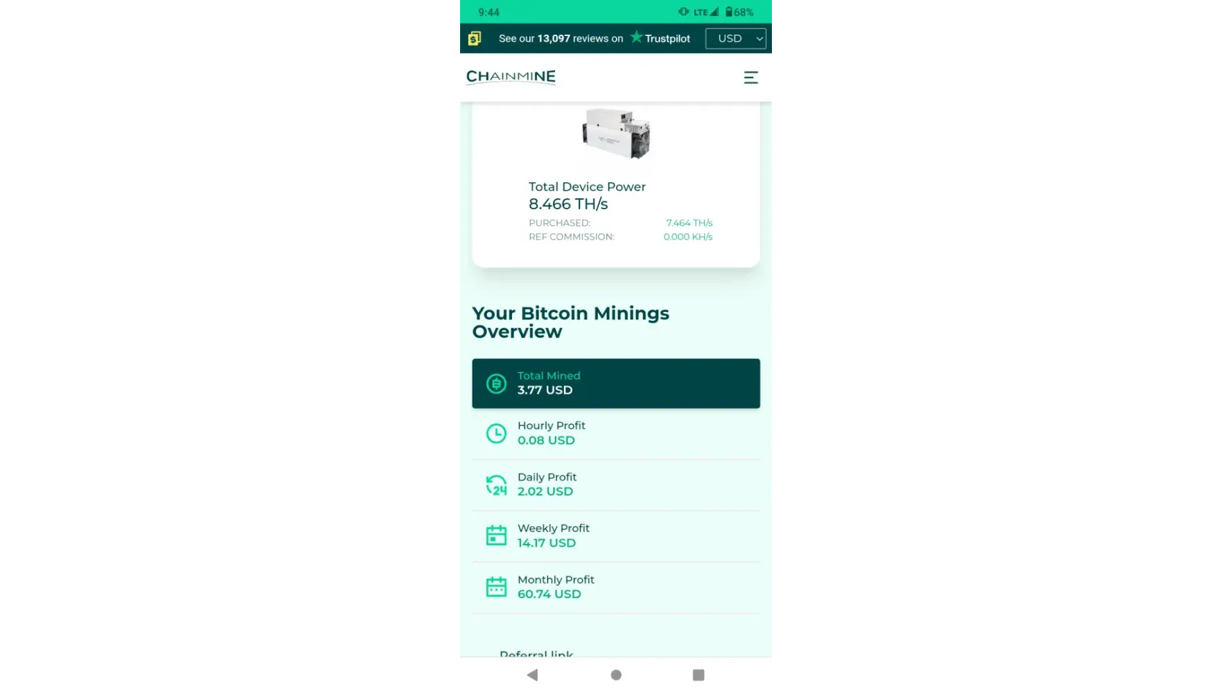 Never got the mining power I paid for then all of a sudden everything I mined just disappeared I'm filing with the bbb and seeing if we can get a class action suit