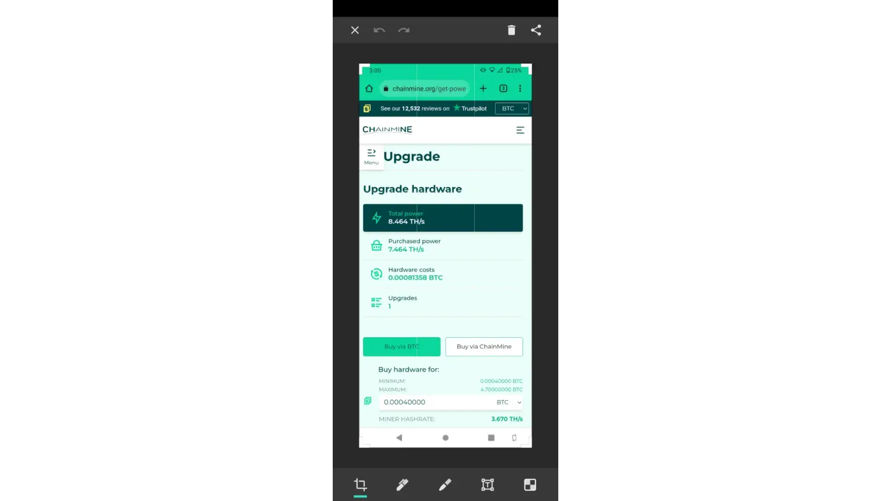 I have just Upgraded my Chainmine account for mining Power sent to address: