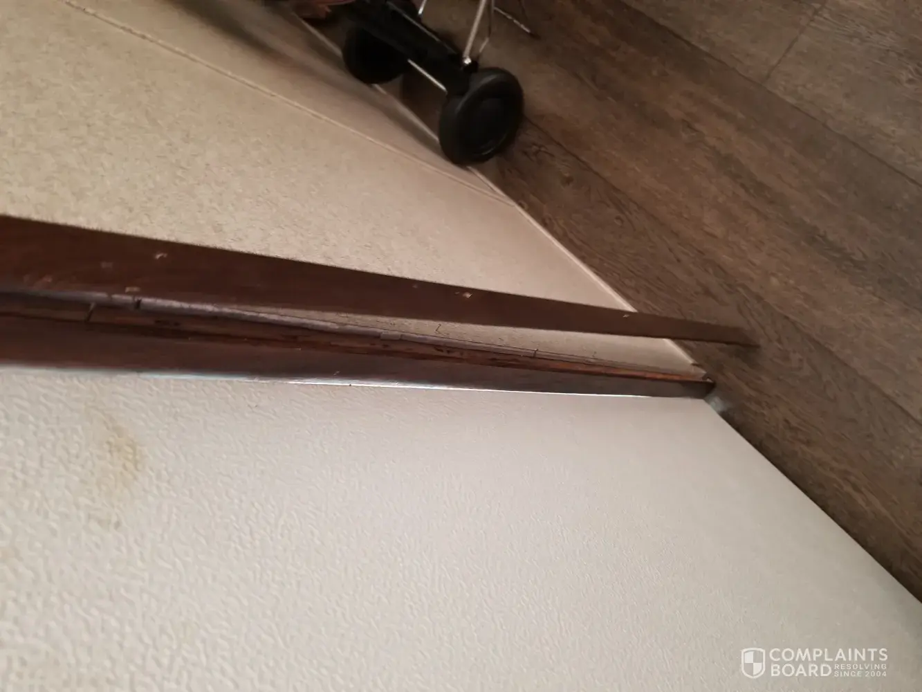 Champion Home Builders Improper exterior door mounting. Cheap underfloor is pressed product.