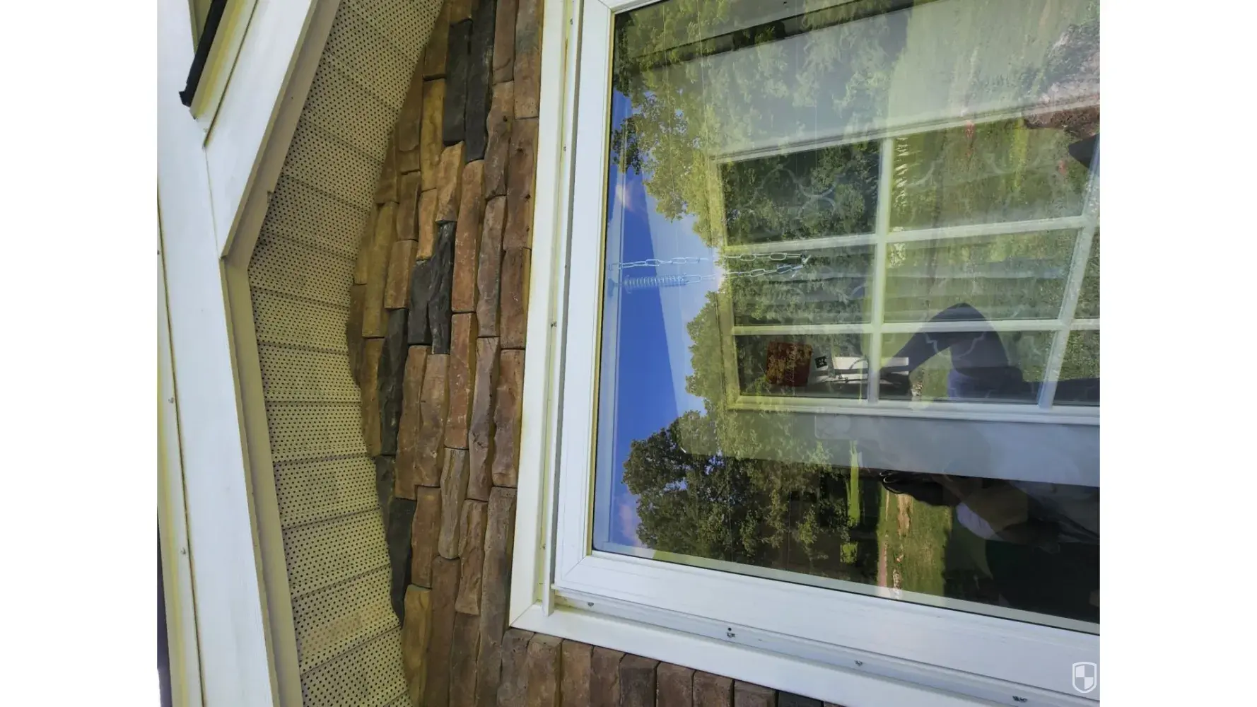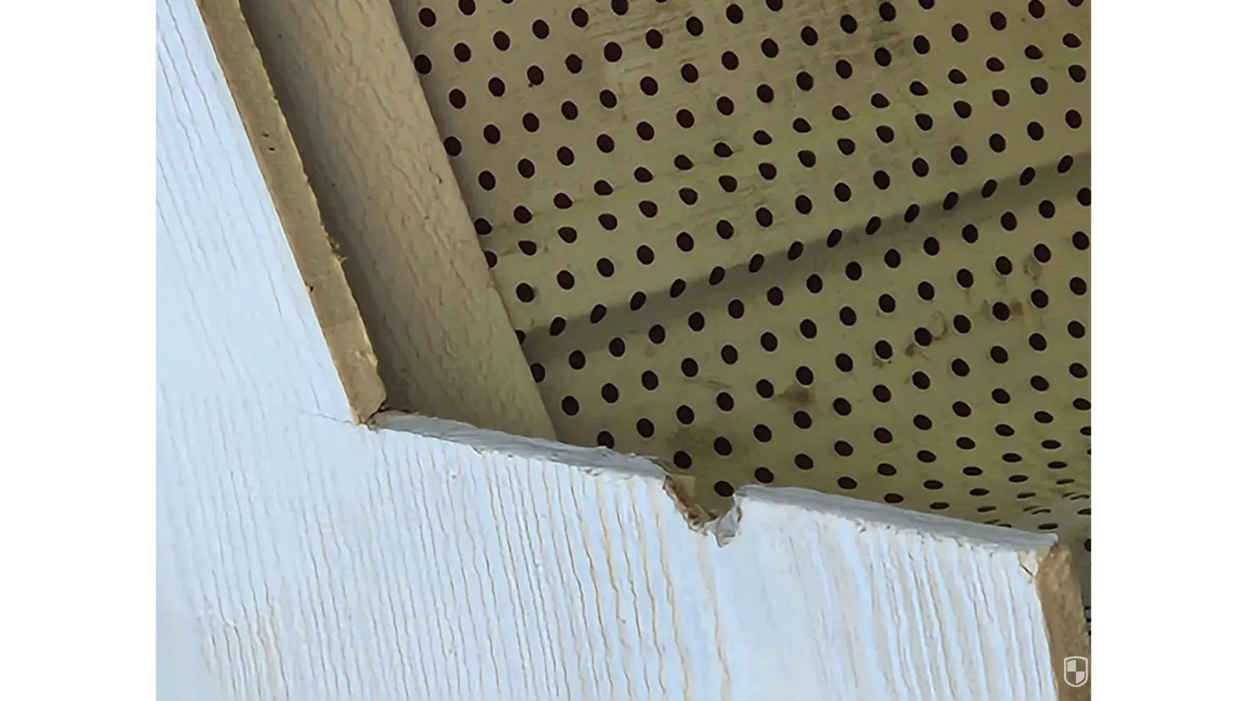 Outdoor soffit panels (3) blew off showing only 3 roofing nails hold each panel.