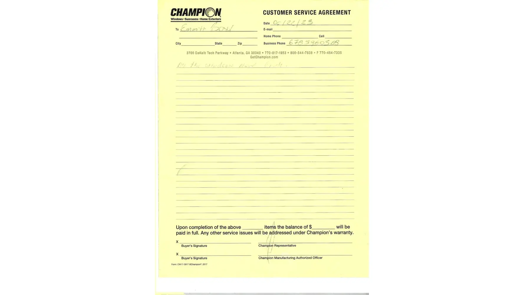 Champion sent someone to install the windows. I asked the installer about the windows not having grids on the day he arrived at my home. The installer made a call and after the call he said to me someone will come out to replace the glass with windows that have grids in about four weeks. The installer gave me a Champion customer service agreement on the day...