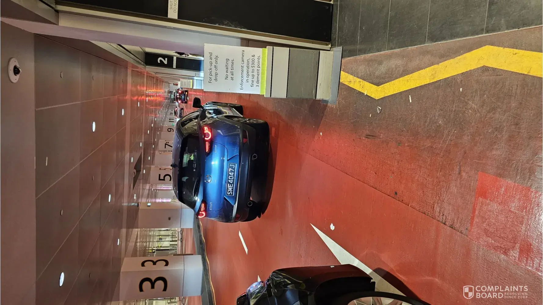 drop off a passenger and park/waiting there for more than 8-10 mins. (please kindly check your CCTV). There's a signboard stated clearly that "No waiting at all times".