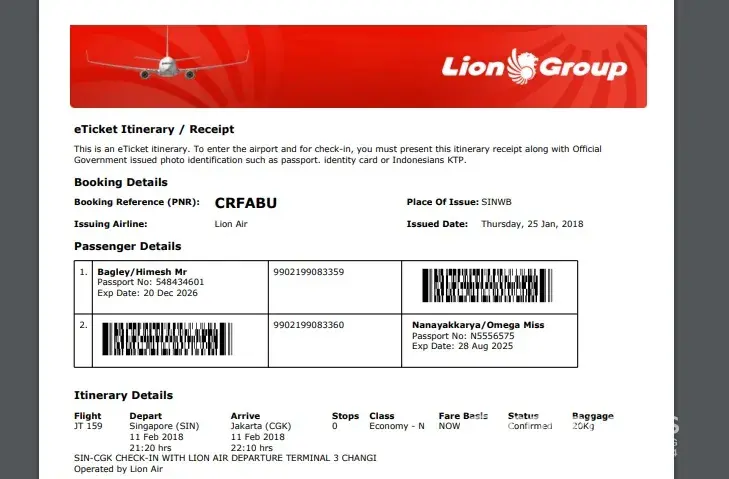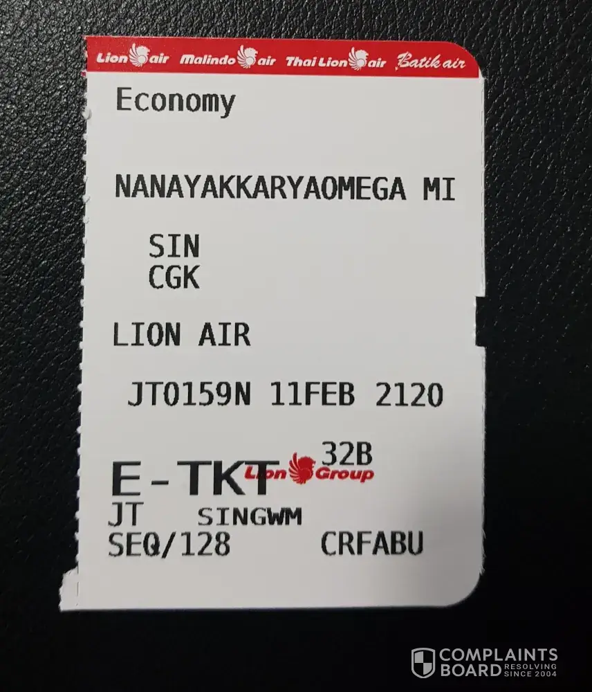 I was flying with Lion Air from Jakarta (CKG) to Changi airport, flight JT156, on 1 Mar 2018.