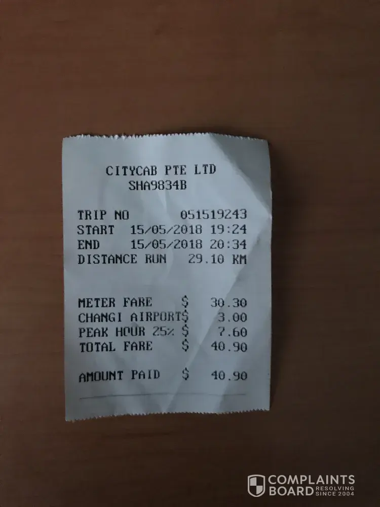 I took a taxi from Singapore Changi Airport, terminal 2 on 15/5/2018 (there is attached taxi receipt) to Woodlands Drive 14. The total trip cost me S$40.90 for one hour and 10 minutes! This is so ridiculous! Although there is some road condition, but the fast lane is running smooth. The taxi driver refuse to use the fast lane until we finally lost our patient and argue with him to take the fast lane.