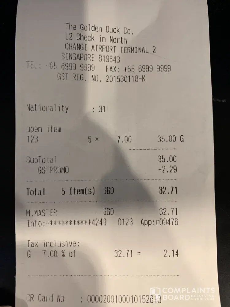 Hi afternoon I've just purchased some golden duck item frm The golden duck shop at terminal 2 departure hall ( near to jinjja chicken shop) This is a very bad customer service I've meet before.when I approach to the counter 2staff were watching video and eating I called then 2 times and no response from them And the third time I raised my voice said...