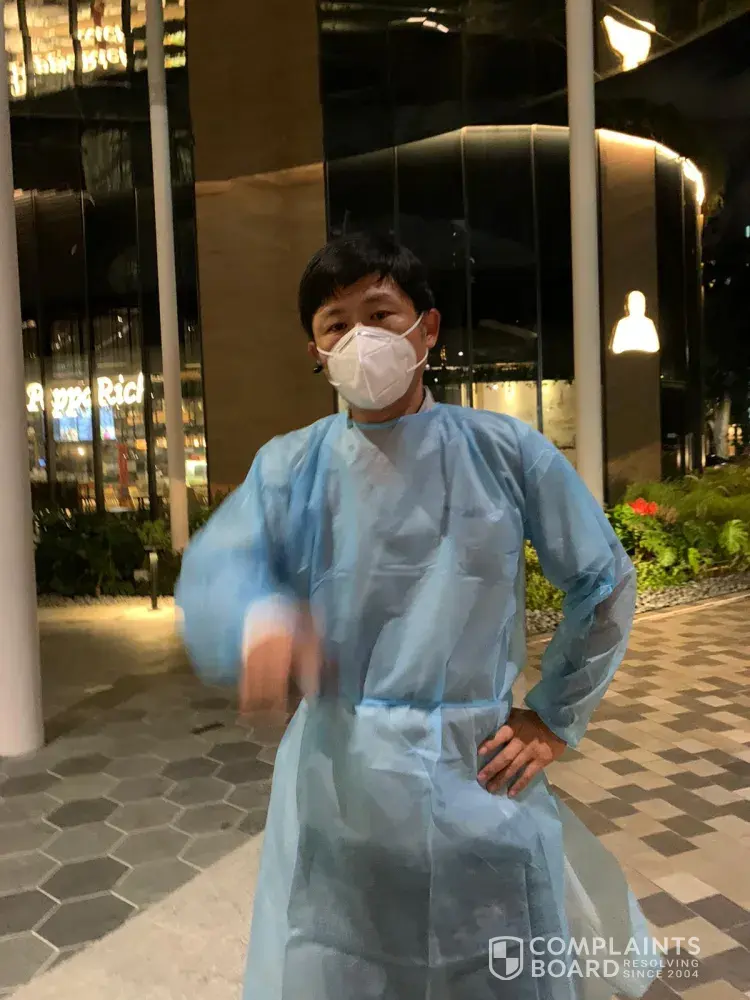 I then requested to speak to the outlet manager, the lady at the cashier directed me to another lady. I told her that they should not allow anyone in this PPE outfit to enter the restaurant. My conversation was interrupted by the "driver" and told me he was "only" fetching marine (seamen) and again emphasis that he was not in closed contact with high risk people.