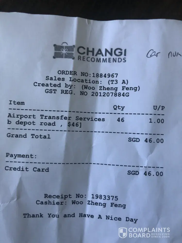 We feel very cheated by a taxi and Singapore attraction ticket purchase counter at the arrival hall of Changi terminal 3. We were told by the ticket stand that it can book a taxi for us cheaper than regular metered taxi. After payment we were given a car registration number and were told to board taxi at B1 door 2. After boarding the taxi, we realised that it's a Grab car taxi service and the price paid is 40% more than the Grab car fare to our destination. Later our friends told us that we have paid an exorbitant price for the taxi and a regular metered taxi is cheaper than what we paid. The licence of the ticket and taxi booking stand should be revoked by the airport authority as it's an outright tourist scam for taxi booking .