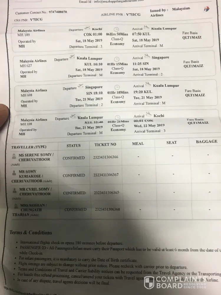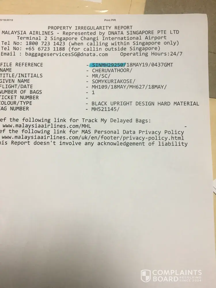 I have travelled from Cochin to Singapore and return in May 2019 by Malaysian Airlines. My luggage got delayed by more than 12 hours on the onward journey and the lock of the luggage was damaged. On my return journey the handle of the luggage got damaged. I have been following up with the Baggage services of the Changi airport and Malaysian Airlines for a compensation. But there is no response even after 3 months.